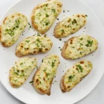 Slice the French baguette into 1/2 inch thick slices. The thickness is key—too thin, and they might crumble; too thick, and they won’t hold the filling well.