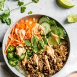 Creating your own Banh Mi Bowl is where the fun really begins. Start by layering a generous helping of fluffy jasmine rice – it’s aromatic and buttery! Next, you’ll add shredded chicken or tofu for protein and a hearty texture. A colorful array of pickled carrots and daikon not only adds zing but also offers a lovely crunch. Finishing it off with crisp cucumbers and fragrant cilantro provides freshness that’s hard to resist. Don’t forget the drizzle of luscious dressing that ties it all together – it’s going to be a bowl you want to revisit again and again!