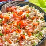 A refreshing BLT Chicken Salad that combines crispy bacon, tender chicken, and fresh vegetables for a delightful dish.
