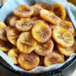 Crispy, golden banana chips sprinkled with a heavenly cinnamon-sugar blend, perfectly made in an air fryer.