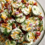A refreshing summer salad featuring cool cucumbers, sweet cherry tomatoes, and a creamy ranch dressing, perfect for picnics or BBQs.