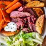 A hearty and savory dish featuring tender corned beef and vibrant cabbage, perfect for cold days and family gatherings.