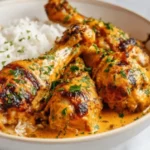 Transfer the chicken drumsticks to a baking dish and pour the creamy mixture over them.