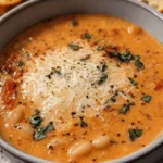 A warm and hearty soup made with crushed tomatoes, cannellini beans, and a creamy Parmesan base, perfect for chilly evenings.