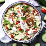 This dish is not just a meal; it’s a rainbow of taste and texture in a bowl! The creamy feta cheese, crunchy cucumber, and juicy cherry tomatoes mingle perfectly with tender chicken and comforting orzo. It’s a power bowl that packs a nutritional punch with protein and healthy fats, perfect for a busy weeknight or a leisurely weekend brunch. And did I mention? It’s incredibly easy to customize—all your favorite Greek meze rolled into one easy dish!