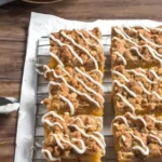 - Drizzle the glaze over the cooled bars, lift them out using parchment paper, slice, and serve.