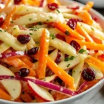 A vibrant mix of crisp apples, sweet cranberries, and crunchy carrots, this salad is perfect for a refreshing summer meal.