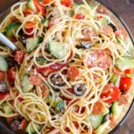 A refreshing Spaghetti Salad that bursts with flavor and combines the heartiness of spaghetti with fresh veggies, making it perfect for any meal or gathering.