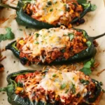 Delicious stuffed poblano peppers filled with black beans, corn, and cheese, bringing comfort and vibrant flavors to your table.